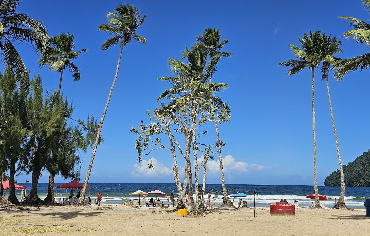 After your mountain adventure, journey over the scenic Northern Range to Maracas Bay, Trinidad’s most iconic beach destination. Arrive at this stunning crescent of golden sand framed by dramatic green mountains plunging into the turquoise Caribbean Sea. Take a refreshing swim in warm waters, relax under the palms, and soak in the vibrant local atmosphere. The highlight awaits at the famous beach vendors where you’ll taste bake and shark, Trinidad’s legendary beach food. Choose your favorite vendor and customize your crispy fried shark sandwich with an array of local sauces and toppings. Browse craft stalls, sip fresh coconut water, and experience authentic Trini beach lime culture.